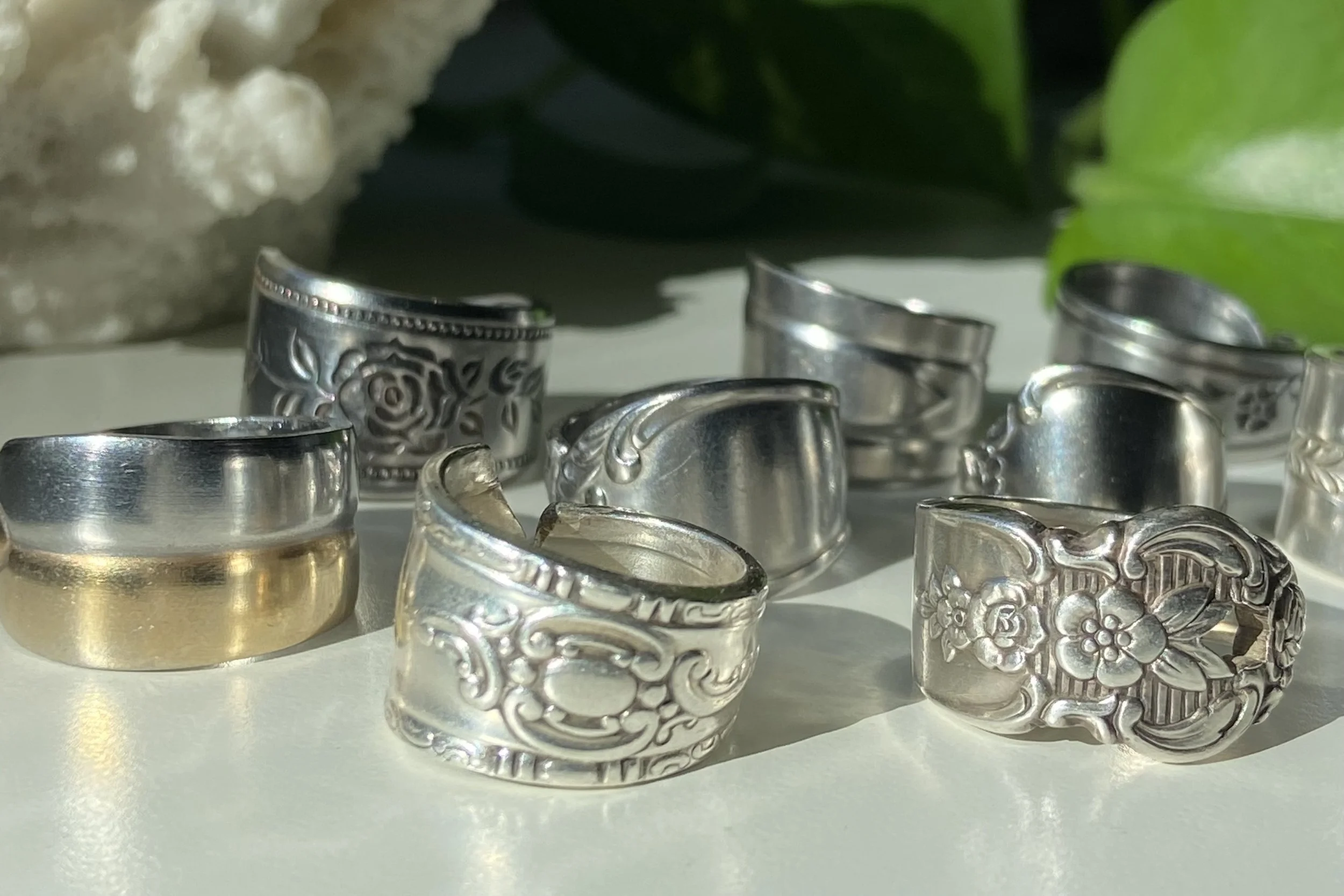 Sometimes she comes across spoons that remind her of specific people—an ornate pattern that suits a friend’s style, or a monogrammed “M” she once saved for her boyfriend, Max. One of her most meaningful pieces was one of the first she ever made. “It’s still in my ring rotation,” she wrote. “It was from one of the first silverware sets I ever got, and it’s special because it’s the same pattern my mom and grandma picked from my case of rings. They had no idea I had chosen that one too.”