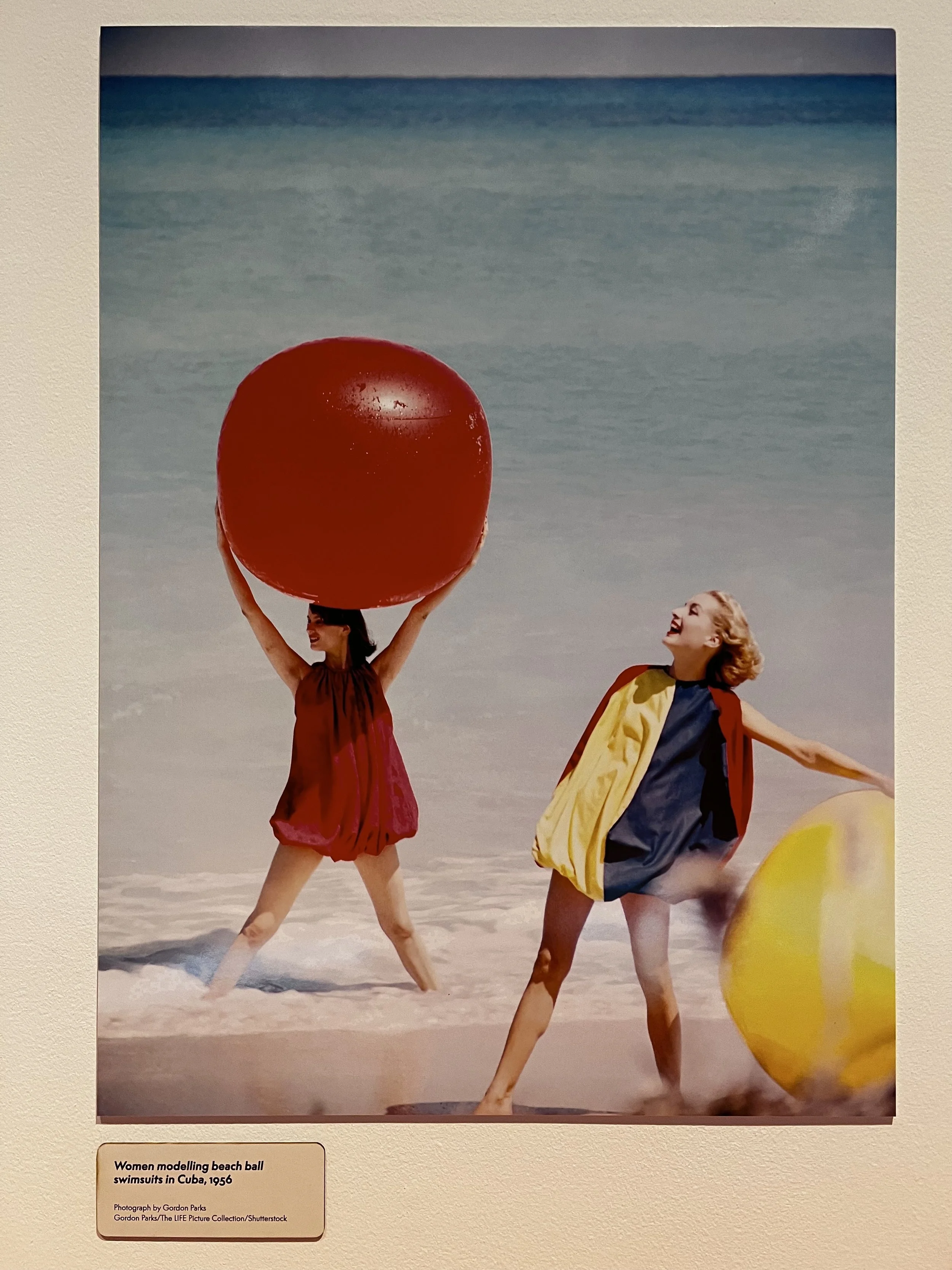 I also loved Gordon Parks’s 1956 photograph of women modeling inflatable beach ball swimsuits in Cuba. It’s surreal, joyful, and deeply stylish. I love how this image plays with scale. Together, these pieces highlight swimwear’s role beyond practicality, revealing how it shapes culture and celebration.