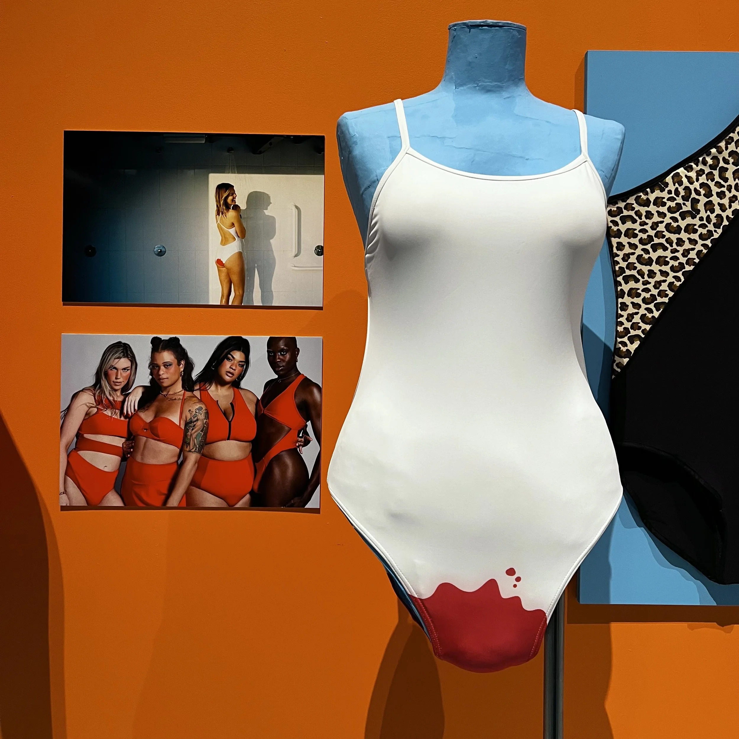 While much of the exhibition focused on innovation and utility, it also celebrated the joy and spectacle of swim culture. As someone with Brazilian roots, I’ve always known how bold and trend-forward Brazilian swimwear can be. There’s a style for every taste: the barely-there fio dental (“dental floss”) bikinis perfect for minimal tan lines, bold maximalist patterns that feel like wearable art, and everything in between. What ties it all together is a kind of unapologetic vibrancy — an embrace of the body, the beach, and life itself. That spirit came through in Fernando Cozendey’s gender-neutral Lycra jumpsuit, designed to move from Carnival to the club. His work was on display at both Rio’s Carnival and the 2016 Olympics opening ceremony, embodying Brazil’s playful relationship with swimwear as performance and self-expression.